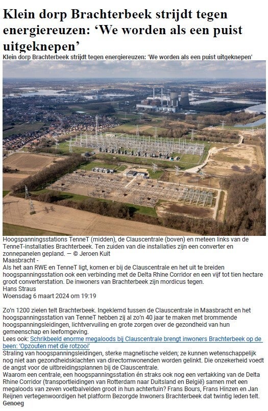 groot converterstation. De inwoners van Brachterbeek zijn mordicus tegen.